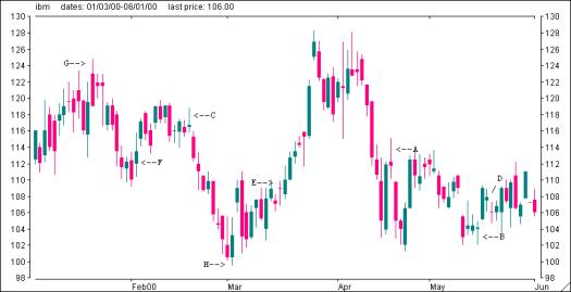 The following are the most significant major bullish/bearish chart formations. An example of each is located on the above chart of MSFT with the exception of C (Abandoned Baby Doji).
